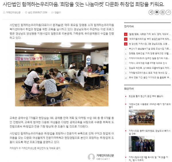 함마음 이야기 '희망을잇는나눔마켓' 다문화 취업,창업 희망을 키워요 > 언론보도